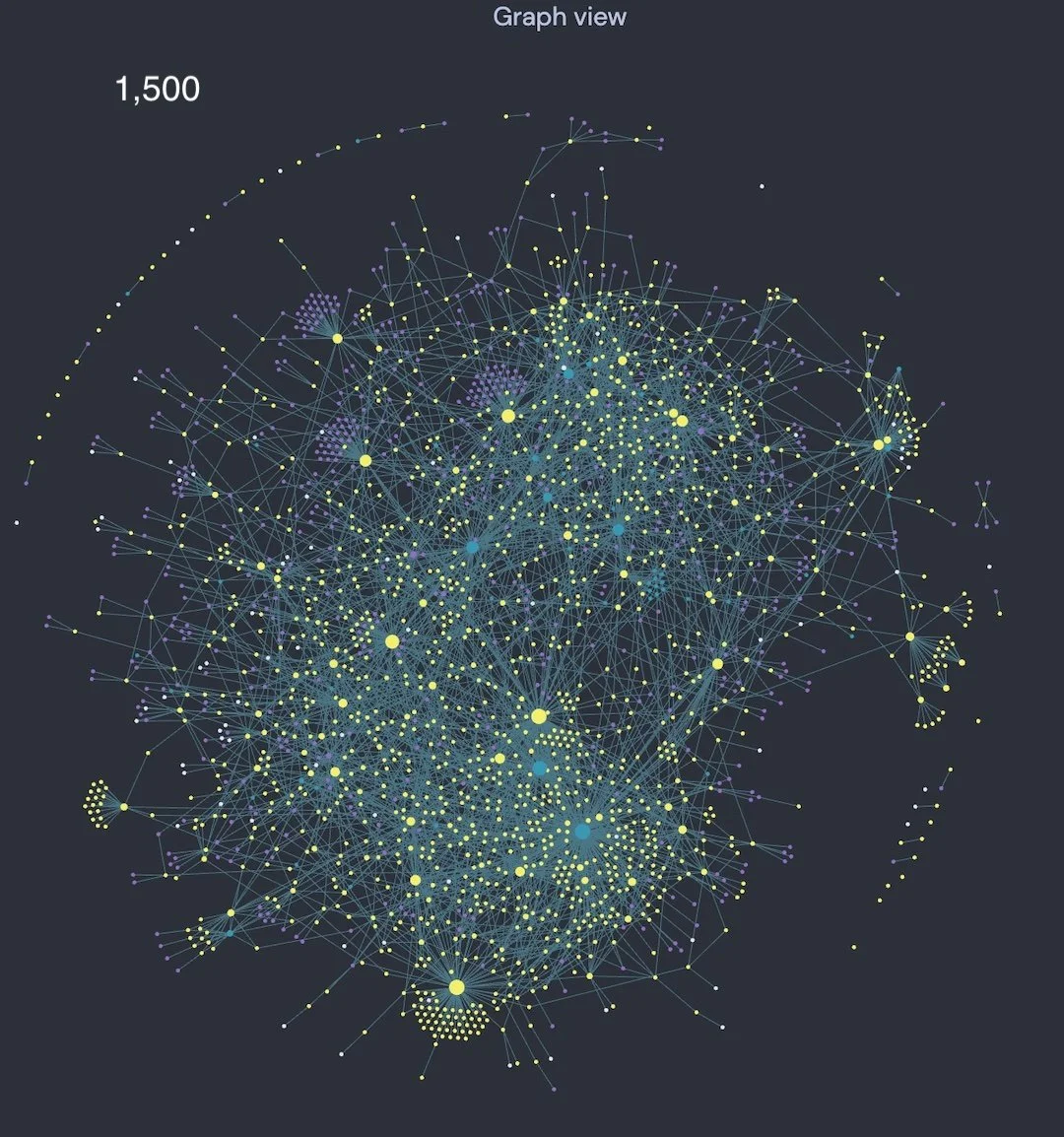This is a graph view of my Obsidian Vault with about 1,500 notes.